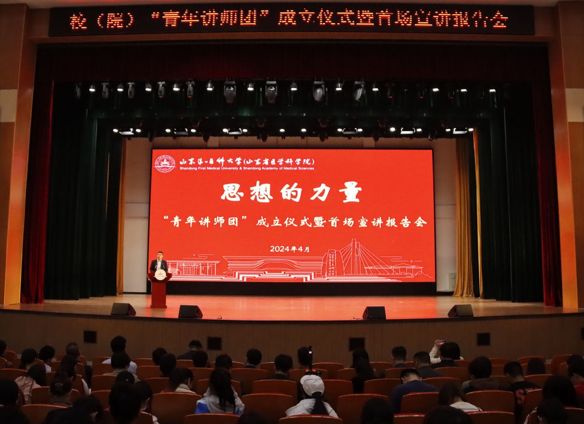 聆听青春故事,砥砺奋进之路。4月11日,校(院)“青年讲师团”成立仪式暨首场宣讲报告会在泰安校区举行,校(院)党委书记刘思金出席活动并为“青年讲师团”成员代表颁发聘书。