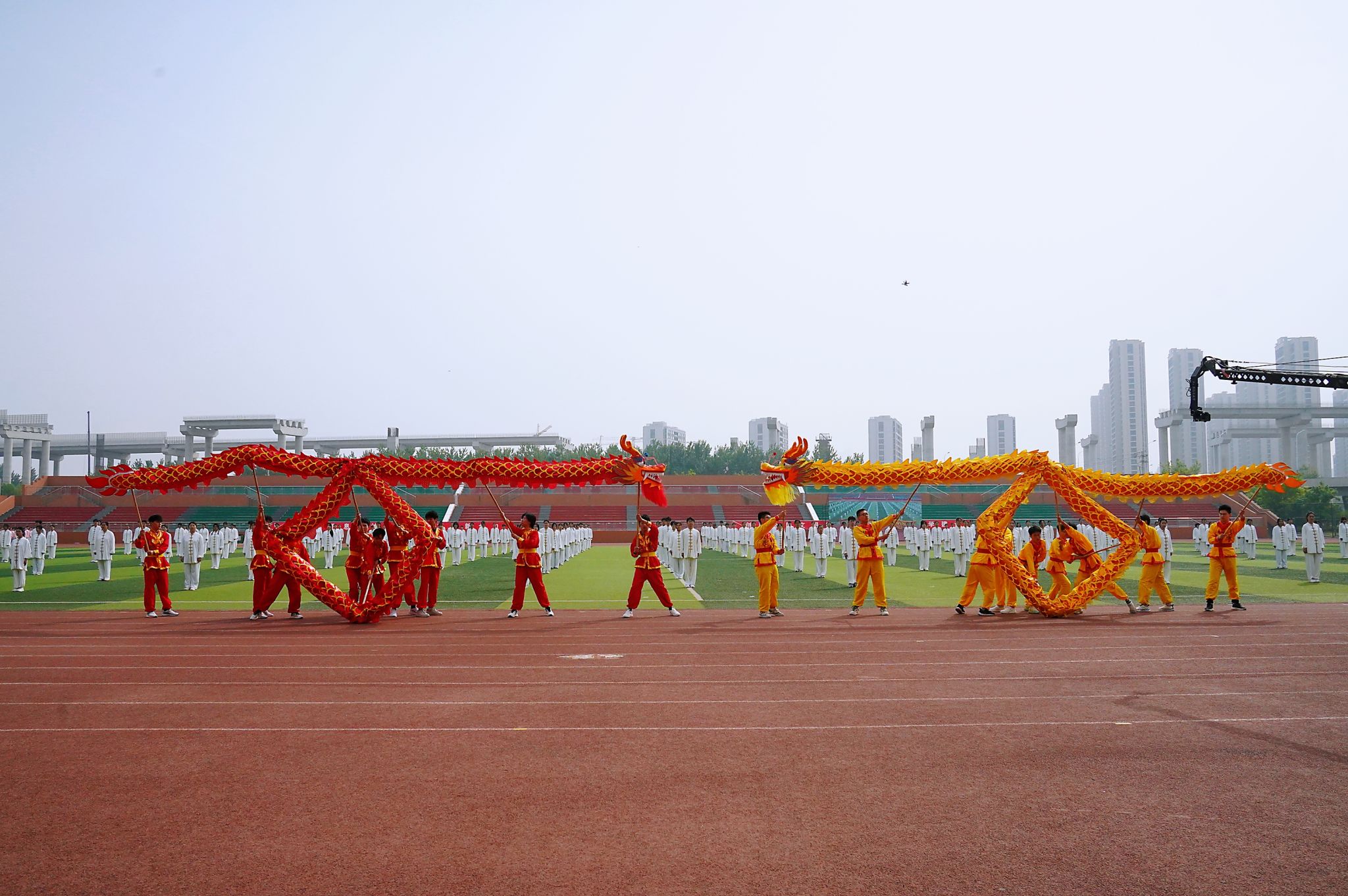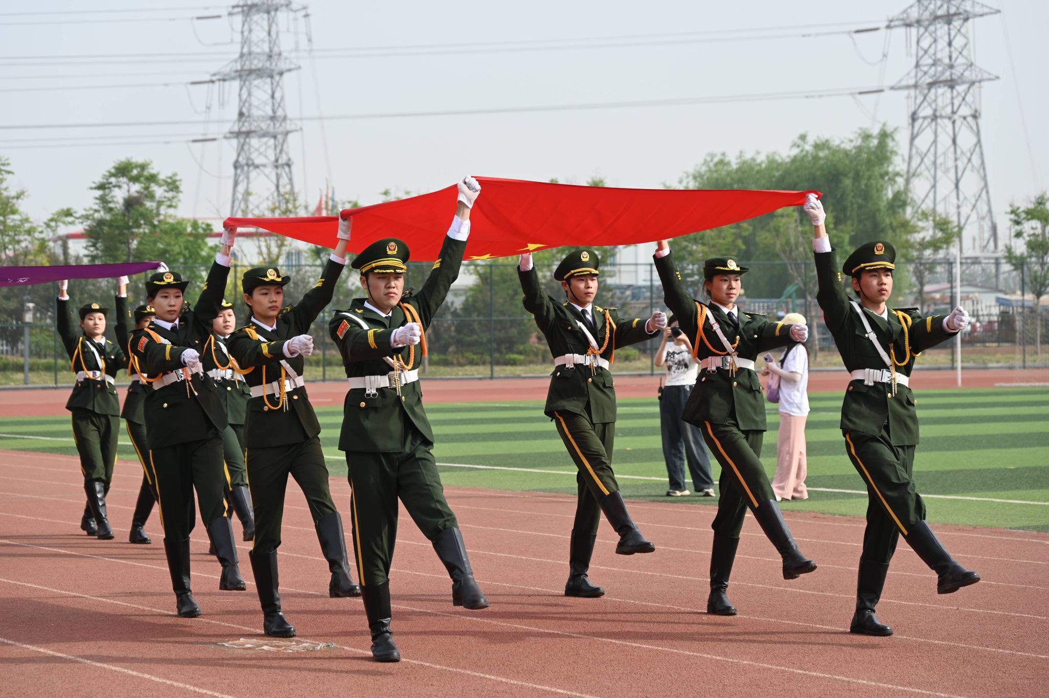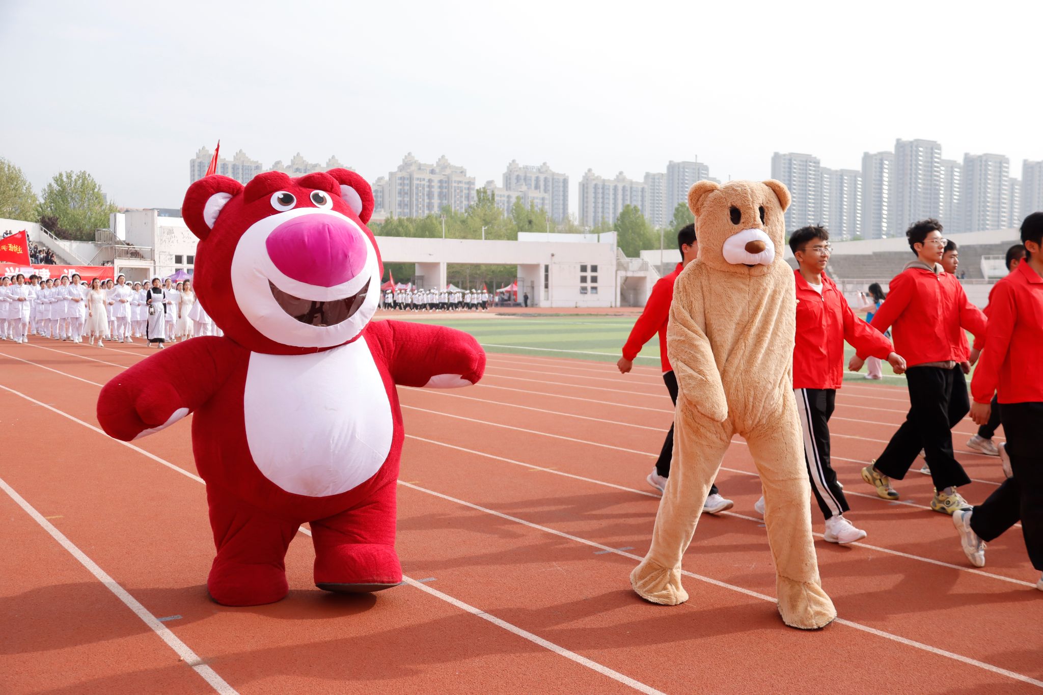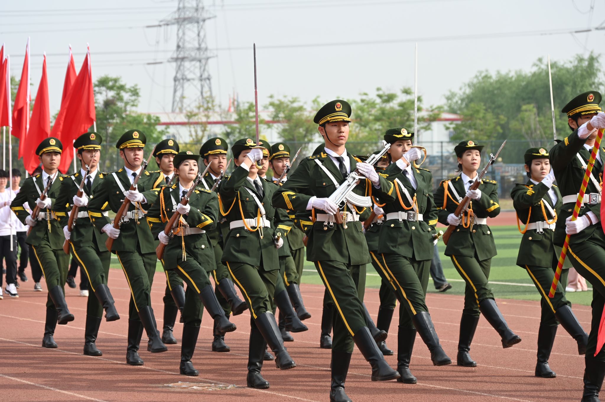 开幕式上,伴随着激昂的《运动员进行曲》,国旗护卫队、校旗队、仪仗队、学生及教职医护员工代表队,步伐坚定有力,口号气势如虹,排着整齐的队列依次入场。朱冰清同学、郭振芳老师分别代表运动员、裁判员宣誓。