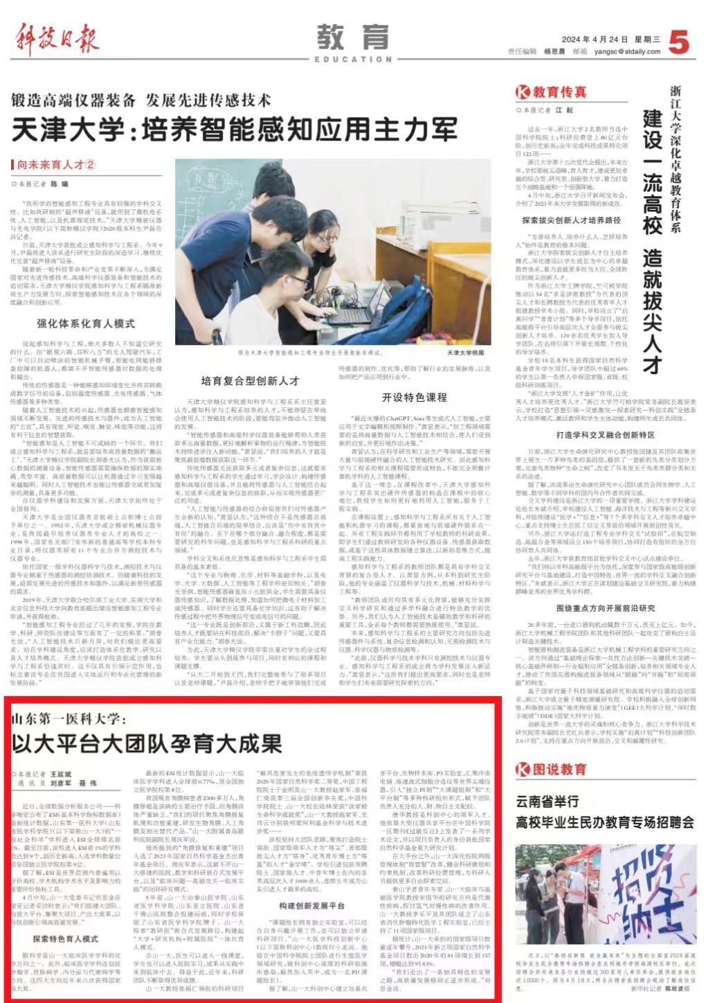 5年前,山一大由泰山医学院、山东省医学科学院、山东省立医院、山东省千佛山医院整合组建而成,同时学校保留了山东省医学科学院牌子。山一大探索“教研医”嵌合式发展路径,构建起“大学+研究机构+附属医院”一体化育人模式。