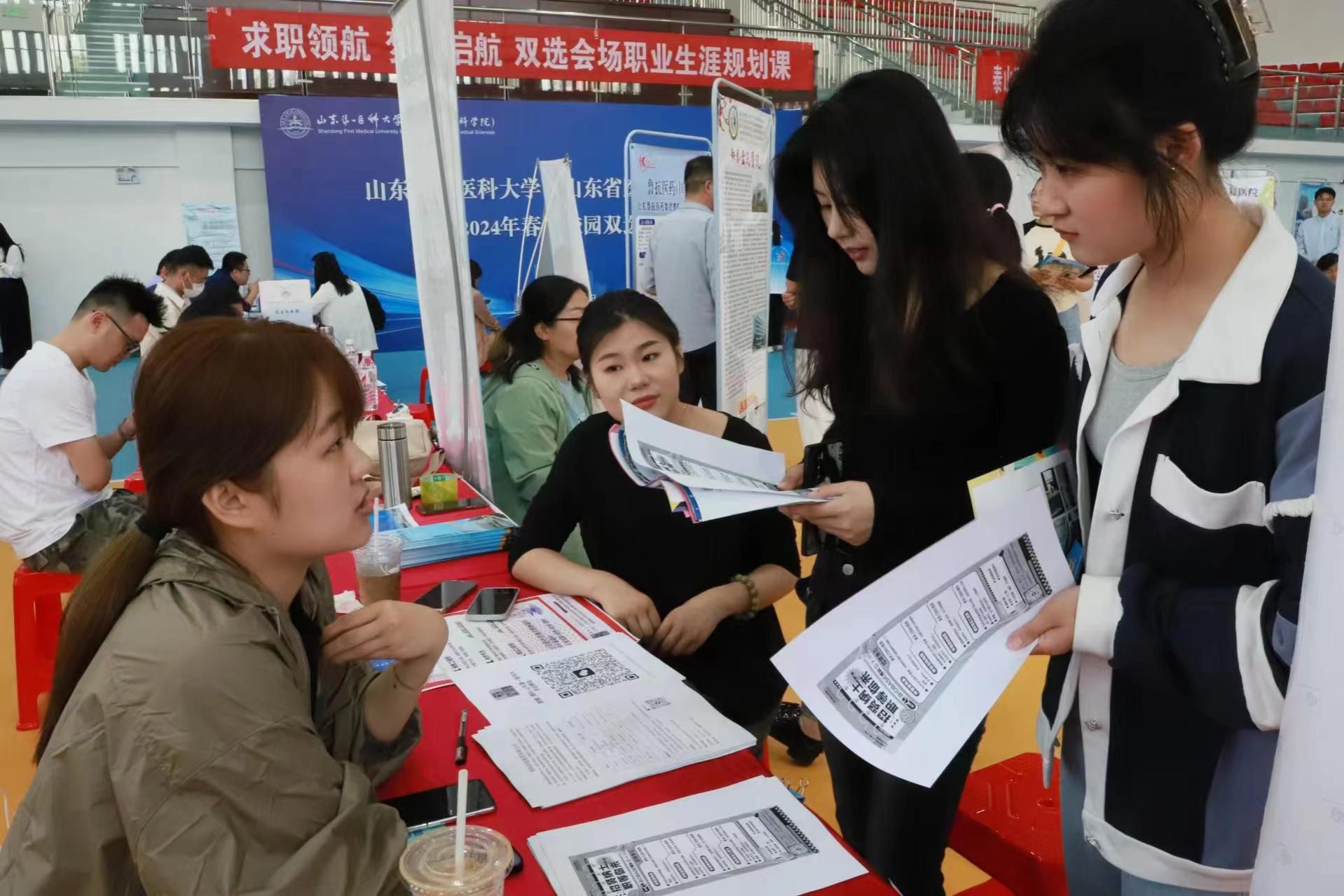 4月27日上午,山东第一医科大学(山东省医学科学院)2024年春季校园双选会在泰安校区举办,副校(院)长刘传勇现场指导工作。