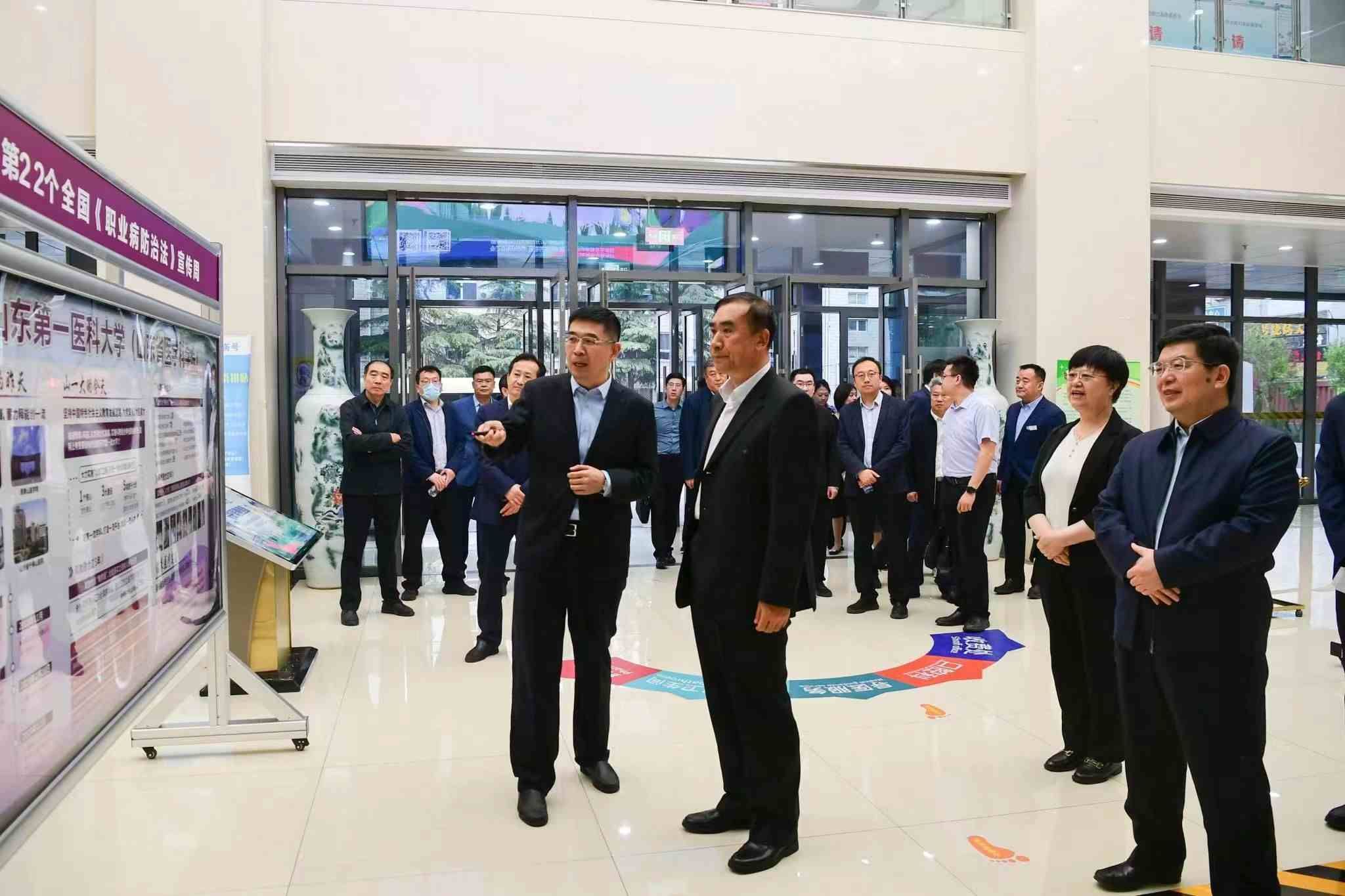 4月28日,第22个全国《职业病防治法》宣传周主场活动在济南举办,今年的主题是“坚持预防为主,守护职业健康”。当日下午,国家卫生健康委党组成员、副主任李斌,国家卫生健康委职业健康司司长段冬梅,副司长、一级巡视员王建冬等一行到山东省职业卫生与职业病防治研究院调研职业病防治工作。山东省政府党组成员、副省长陈平,省政府副秘书长薛超文,省卫生健康委一级巡视员牟善勇,校(院)党委书记刘思金陪同调研。