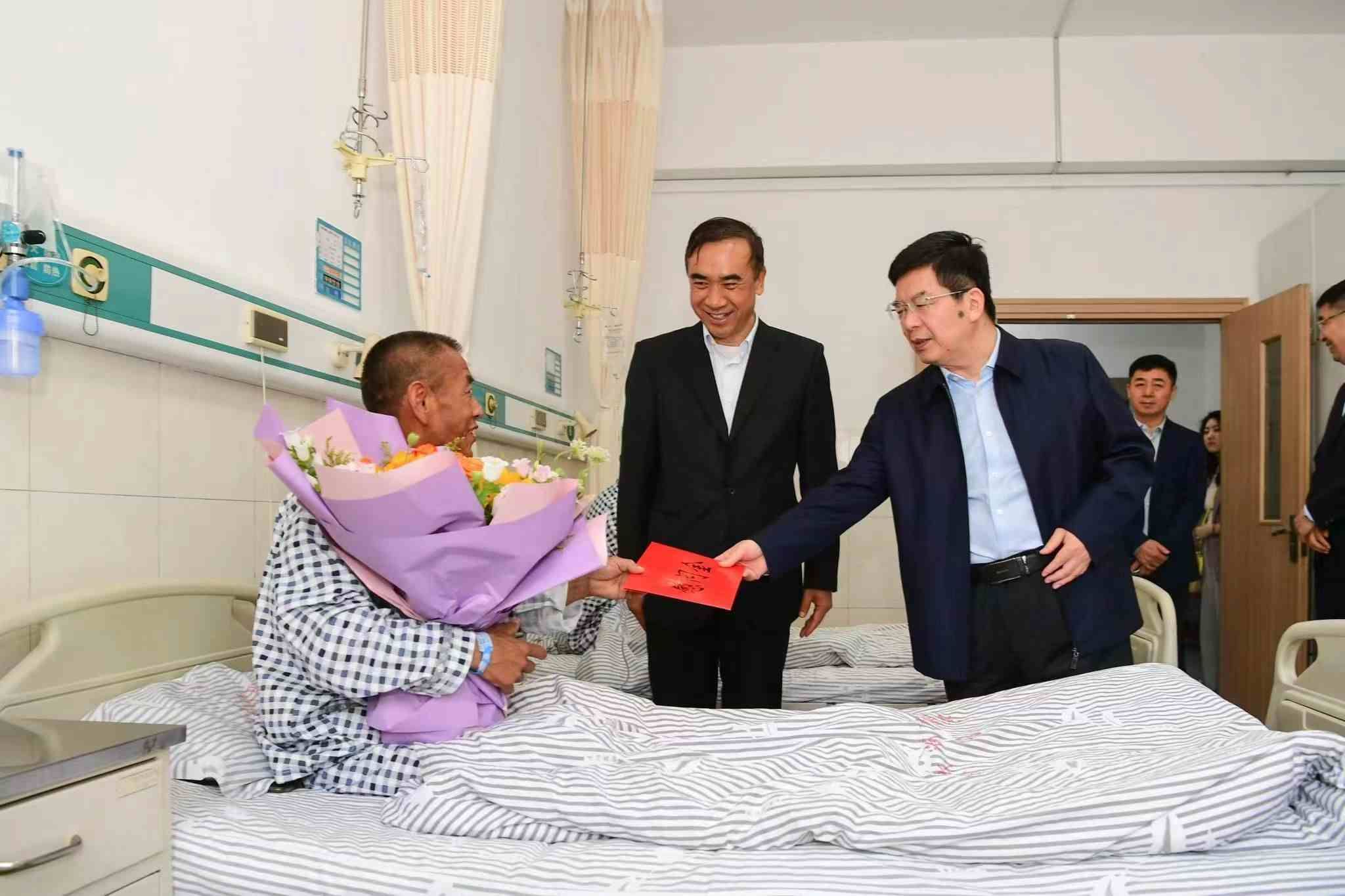 李斌、陈平等领导分别听取了刘思金作的校(院)情况介绍和职防院党委书记、院长李昱作的职防院工作开展情况汇报,亲切看望并慰问了职业病患者,详细了解了他们的病情和救治情况,并送上鲜花和慰问金。
