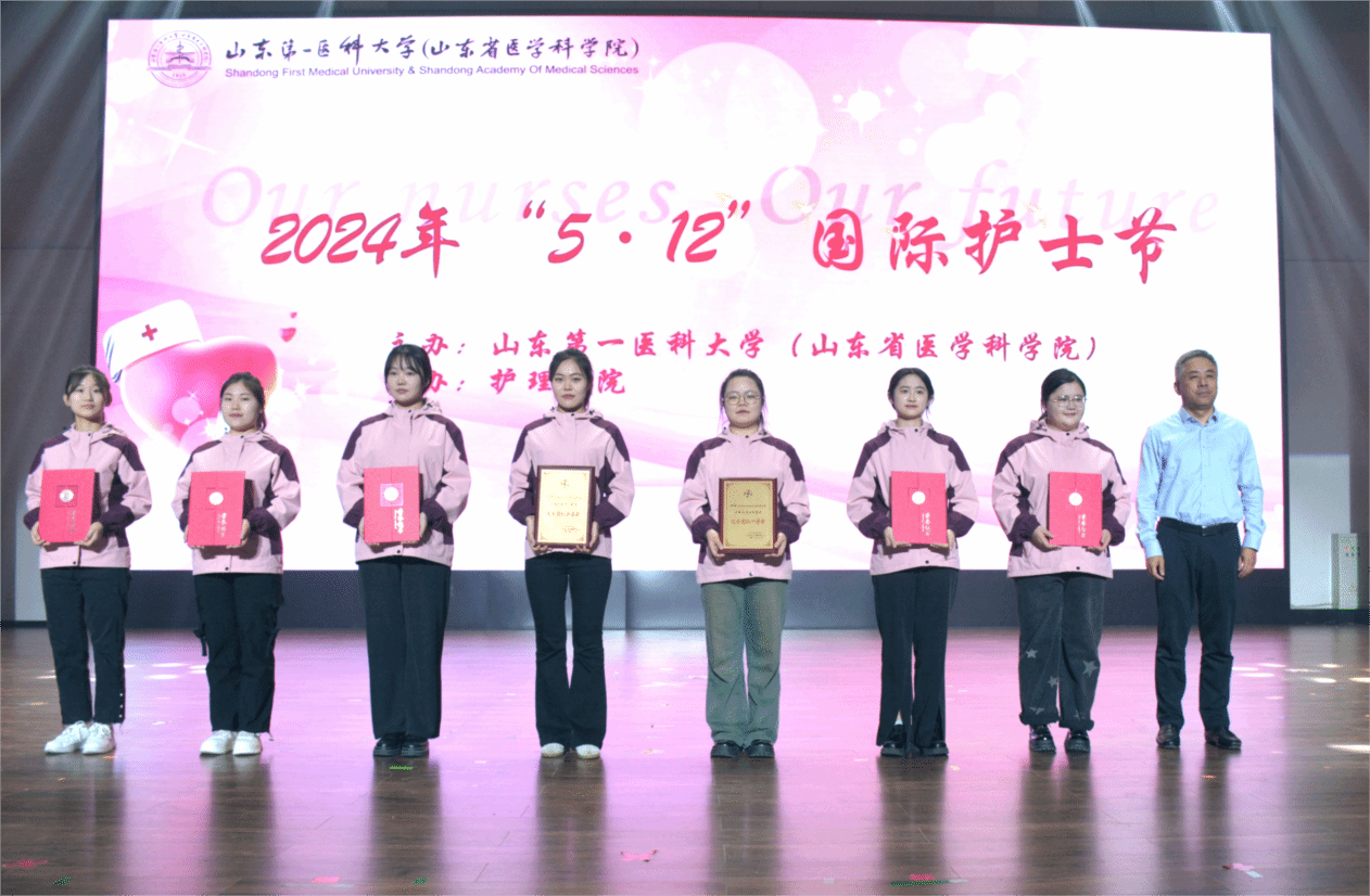 王鹏程为在山东省大学生医学技术技能大赛中取得优异成绩的护理学子颁奖