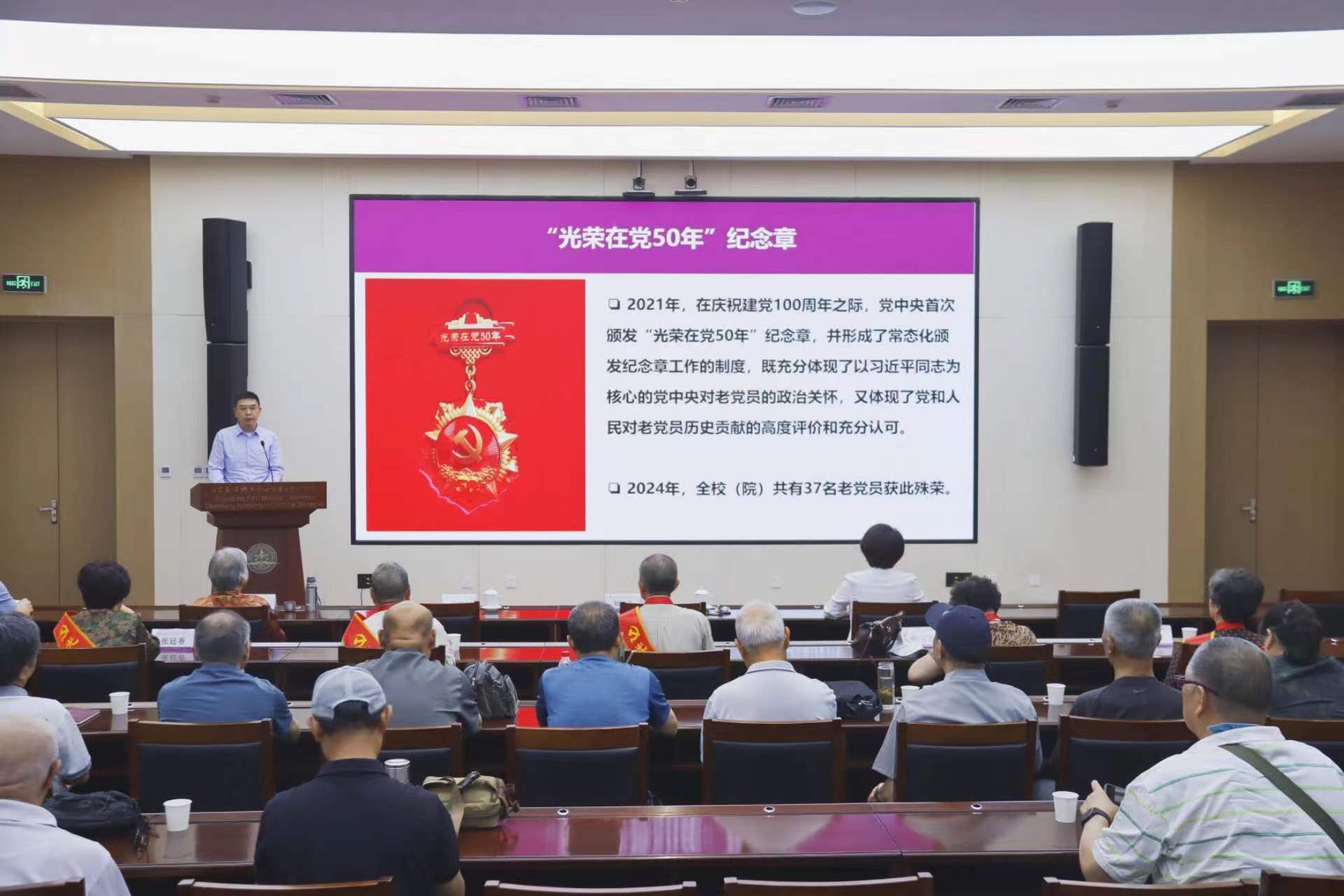 2024年,校(院)共有37名党员获颁“光荣在党50年”纪念章。对于因身体健康等方面原因,不便参加仪式的老党员,校(院)党委结合“七一”走访慰问等形式将纪念章送到了他们手中,进一步增强了老党员的归属感、幸福感和荣誉感。