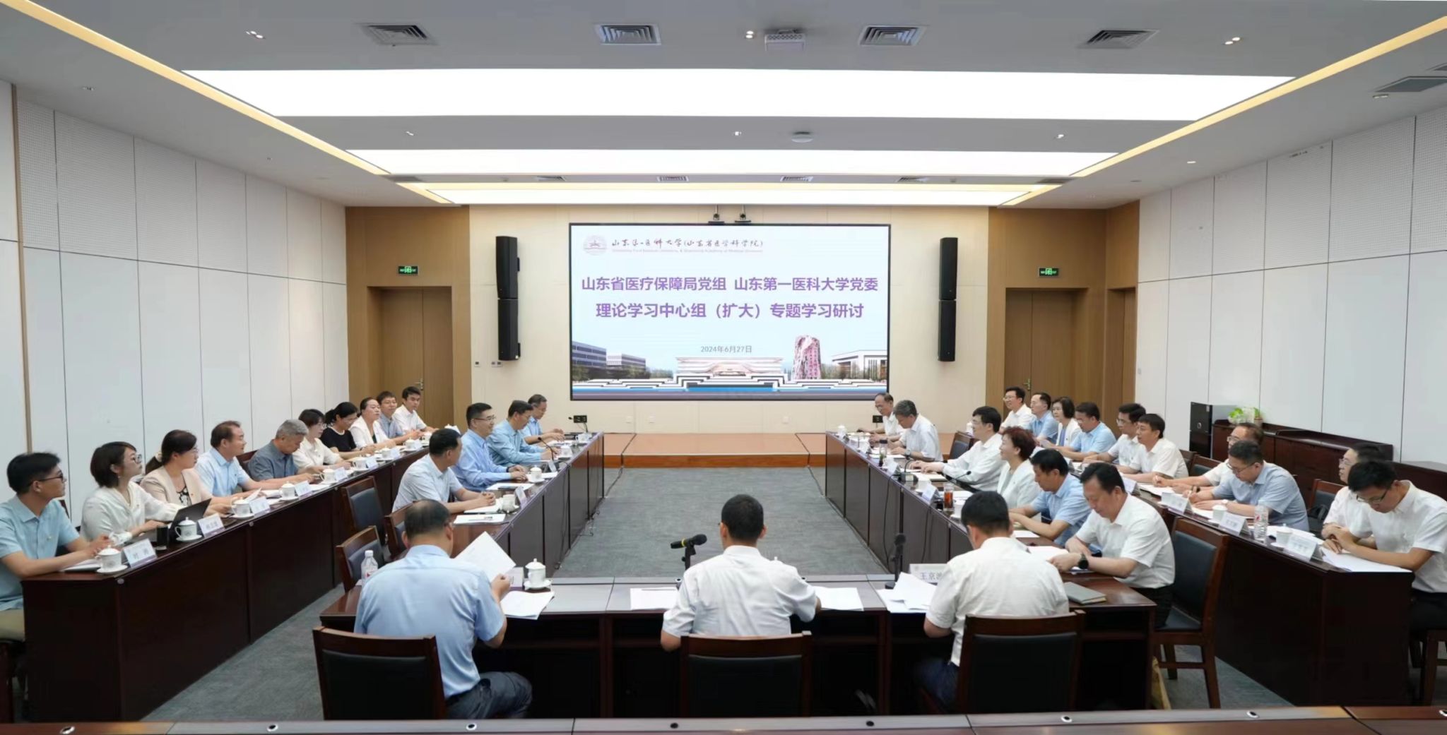 6月27日,校(院)党委与省医保局党组联合开展理论学习中心组(扩大)专题学习研讨,深入学习贯彻习近平总书记视察山东重要讲话重要指示精神以及在企业和专家座谈会上的重要讲话精神,传达学习省委十二届六次全会等会议精神。省医保局党组书记、局长左毅,校(院)党委书记刘思金出席会议并讲话。部分同志结合实际依次作交流发言,深入探讨交流。